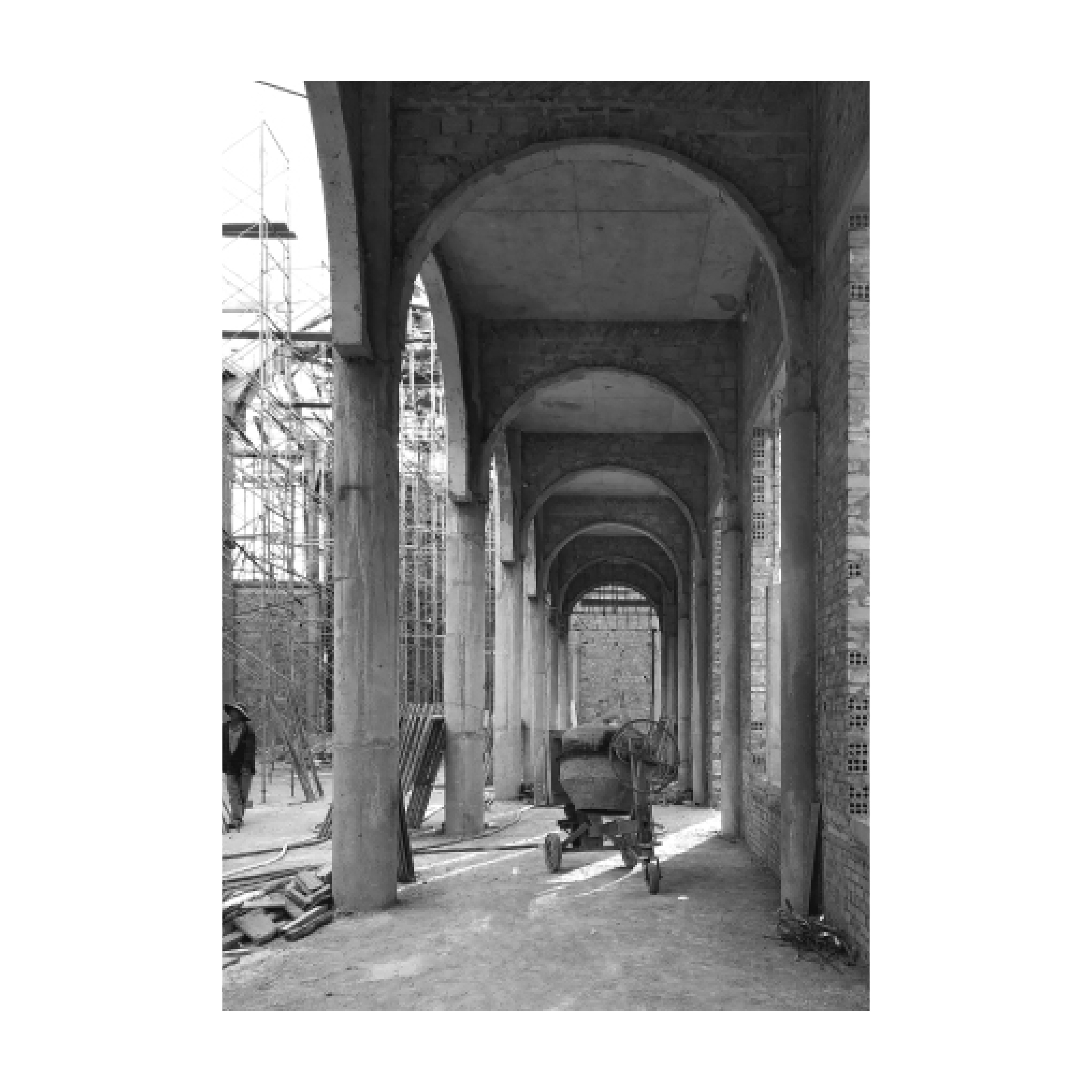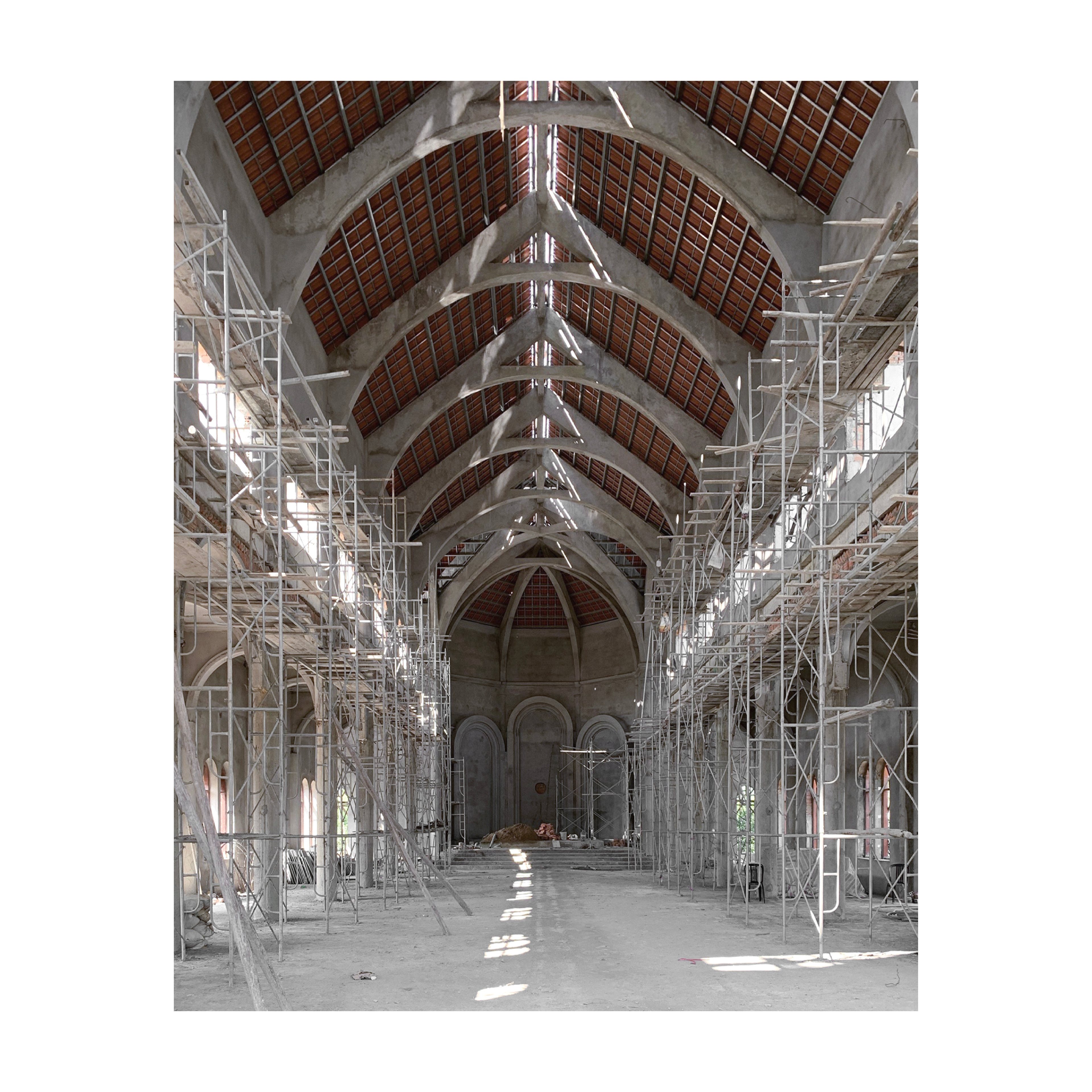 The church's floor plan follows a classic basilica layout, not too special. We have shown the decorative details at a moderate level, enough to feel, not aiming for sophistication and ostentation. The old church before being demolished to rebuild the new church has an entrance from the small road along the river. When receiving the design request, the church asked us to turn the direction in the opposite direction, that is, the entrance is from the main road of the village (the new road later). When we asked the reason for that change, the Parish Council replied "first near the market, second near the river", the entrance is prioritized from the main road, which is the most accessible traffic route for parishioners here.